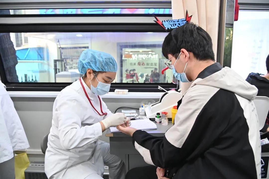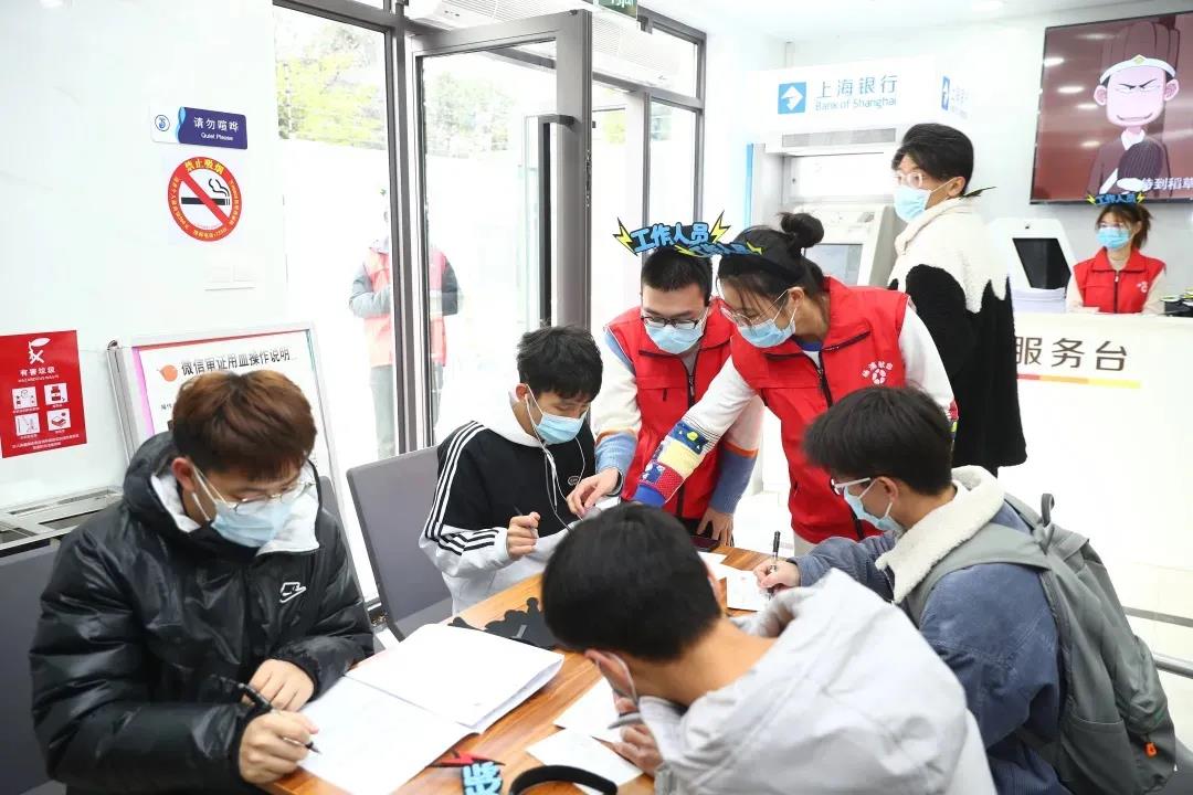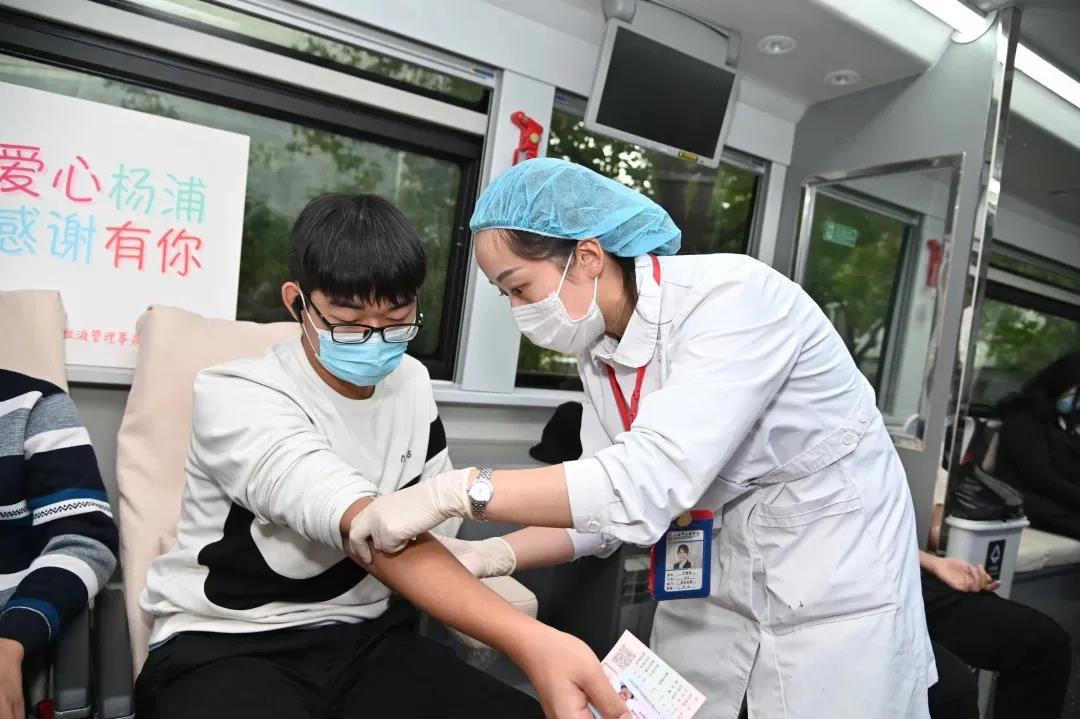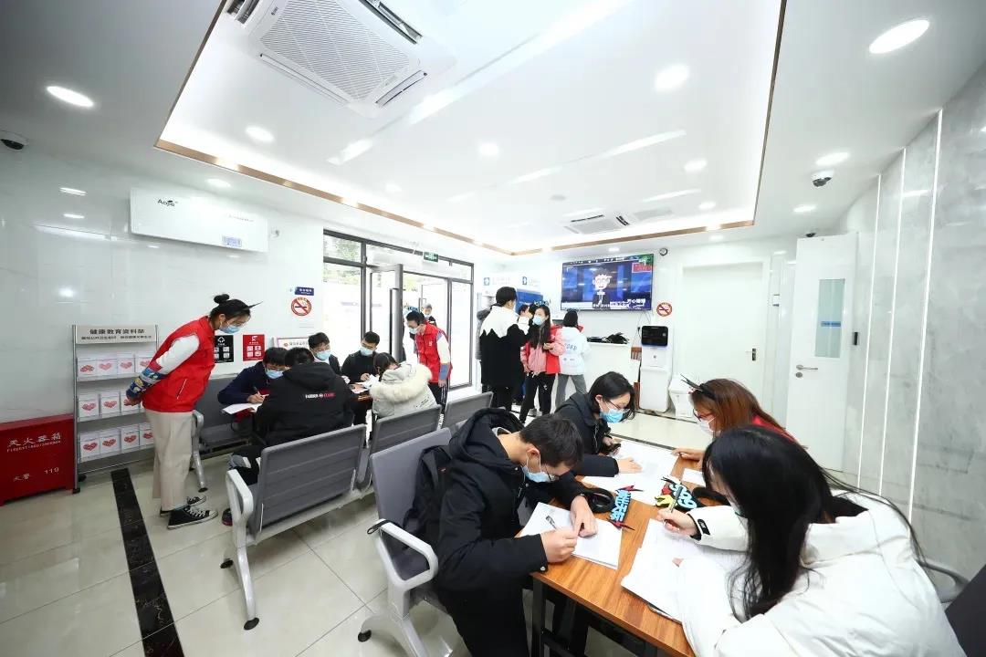 穿过宣传走廊,来到翔殷献血点,上海市血液中心的医护“小姐姐”们正为献血者进行体检和献血服务,每一句关心和问候都让首次献血的年轻志愿者们倍感温暖。