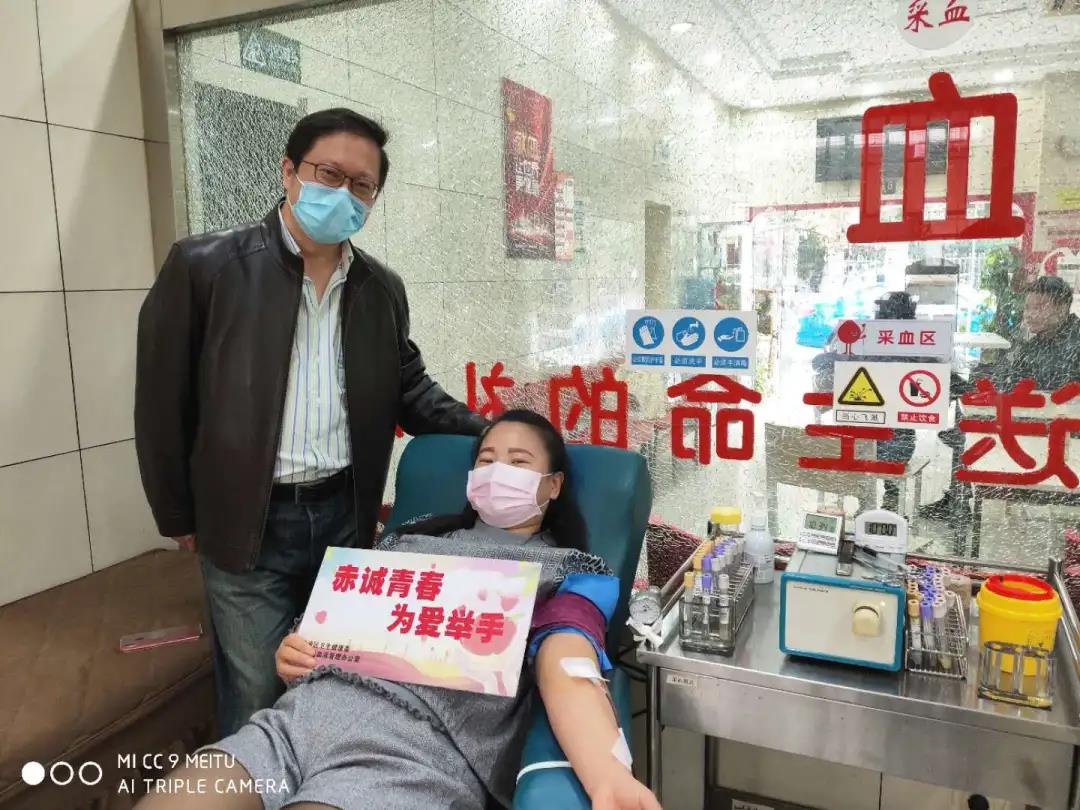 11月1日上午,黄浦区无偿献血志愿者团队中的五位特殊血型志愿者在区血液管理办公室的统筹安排下,在副组长葛兰的带领下齐聚丽园爱心献血屋捋袖捐血迎进博,黄浦区血液管理办公室主任袁加峰亲临献血屋对志愿者表示感谢和慰问。