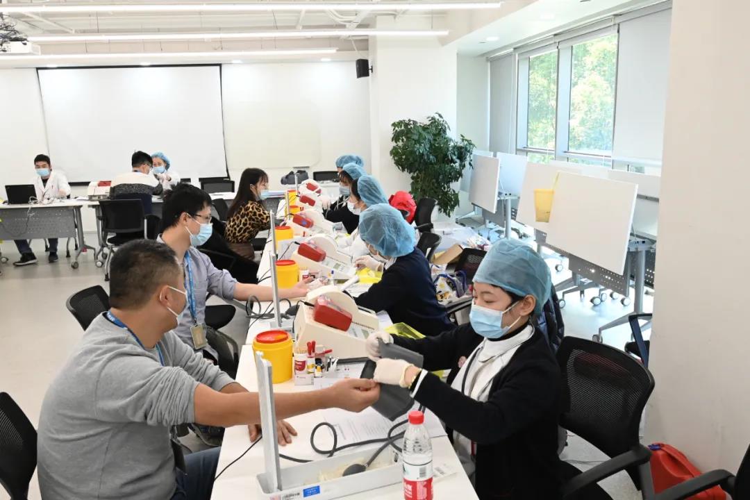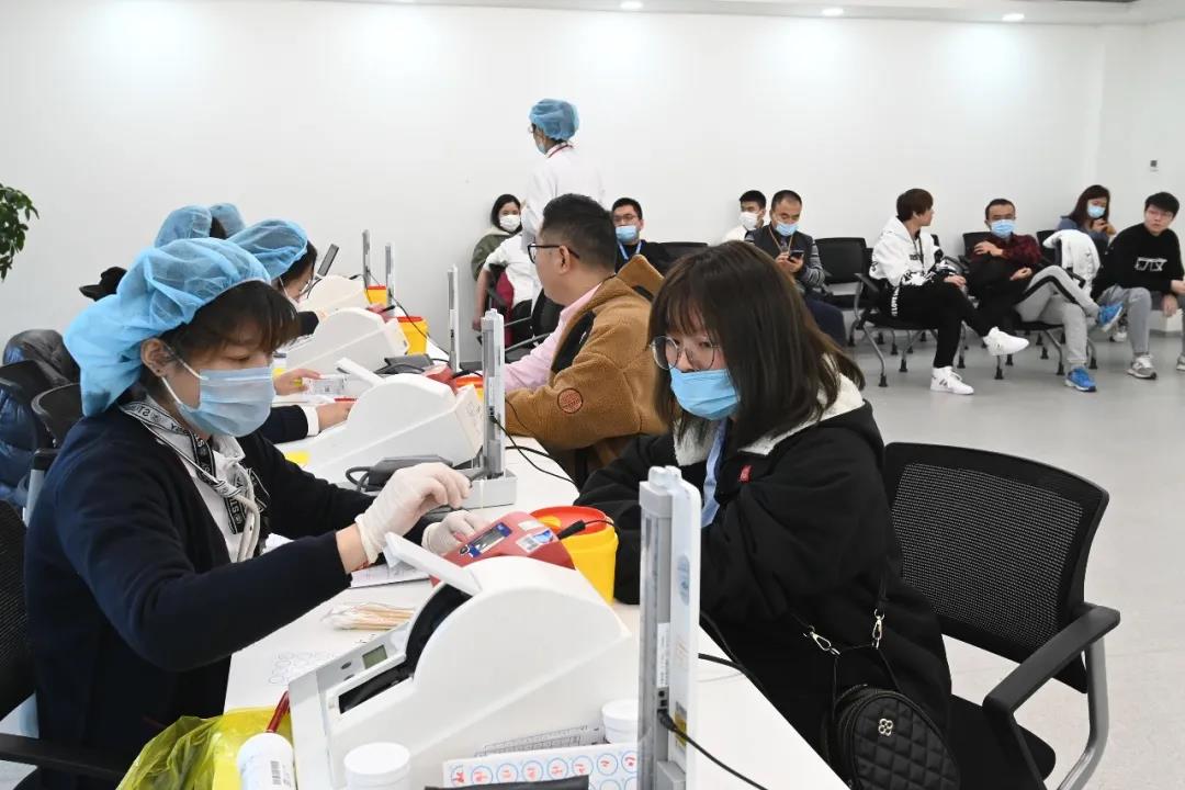 长宁区血液管理办公室的工作人员亲临现场统筹协调,前期与上海市血液中心采血小分队以及携程相关管理人员进行沟通,严格按照疫情防控要求设计献血流程,采取了让每一位献血者都精准预约献血时间、提前发放献血表格等多种措施,携程办公大楼里设置公共填表区,献血指示牌等,献血现场人头攒动却井然有序。