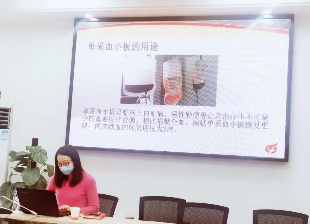爱心献血屋工作人员曹青回顾总结2020年度献血屋无偿献血情况,分享了无偿献血知识和志愿者活动的经验。