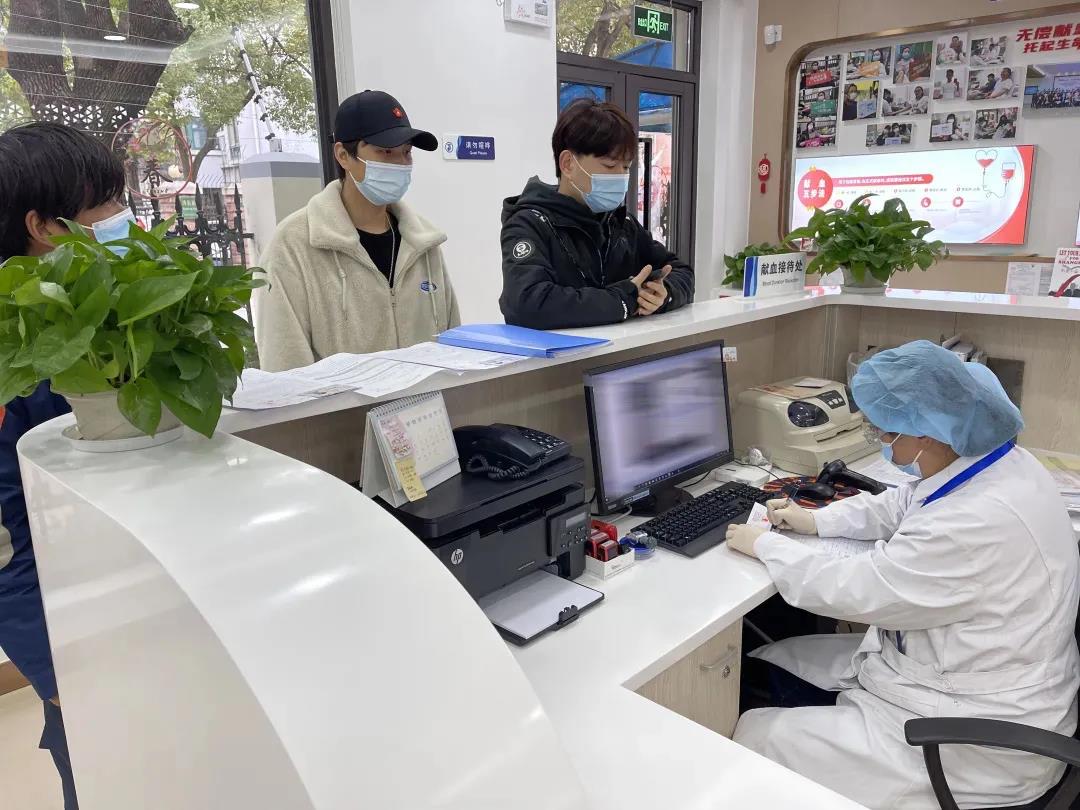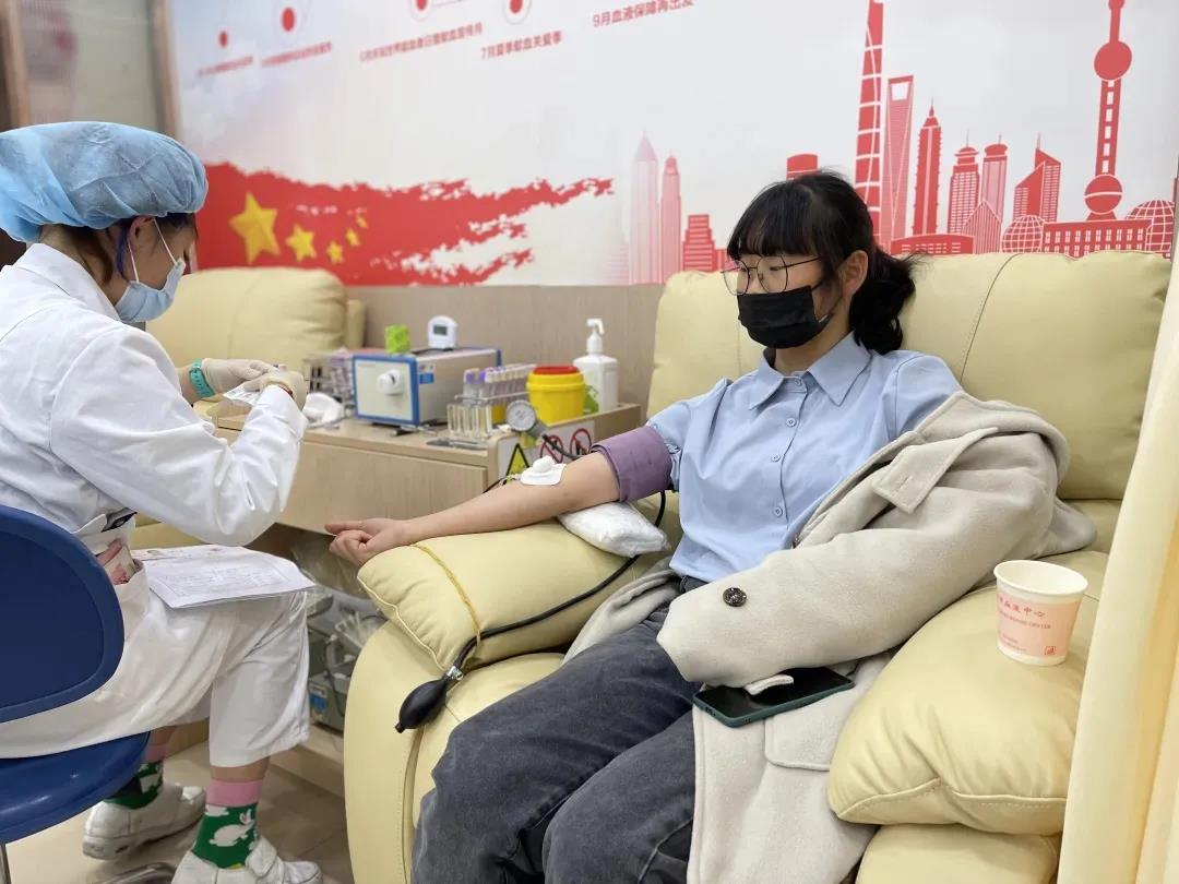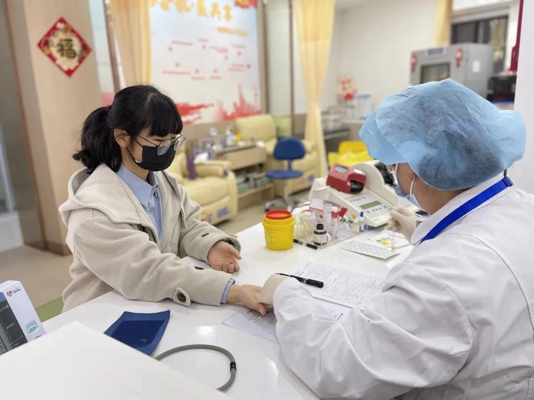 翔殷献血点,来自朝阳无偿献血宣传队的年轻志愿者刘棣芳在同学的陪伴下,完成了第一次无偿献血,她说到:“在1月份参加无偿献血宣传服务的时候,我认领了自己的无偿献血日,能在工作过的地方亲身体验无偿献血,感觉非常好。”