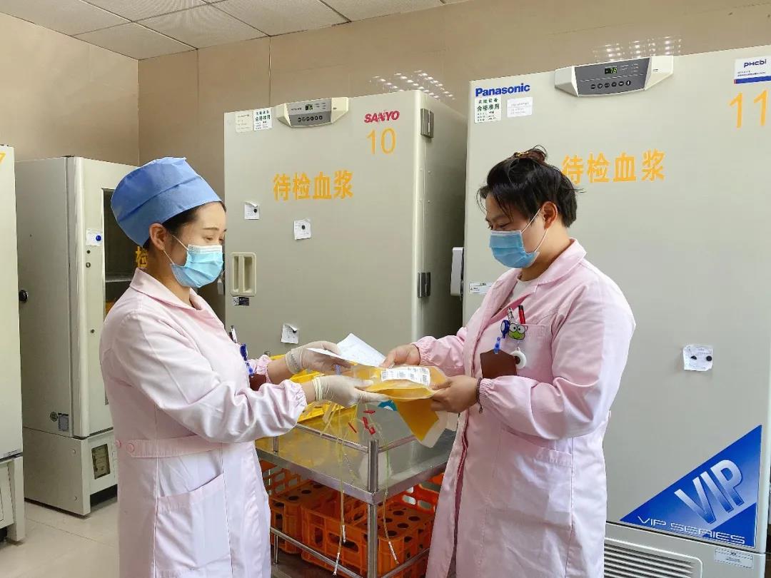 4±2℃,不是冰箱的温度,而是她们手指的温度,制备冷沉淀凝血因子时需要将-40℃冻存的新鲜冰冻血浆放入低温融化箱内水浴融化,将血浆虹吸取出,留下的不溶解物质为冷沉淀凝血因子。低温融化箱的工作温度是4±2℃,在制备的两个多小时内,她们双手不断接触冰冻状态的速冻的血浆袋和4℃左右的水。不畏数九寒冬,不畏每月的特殊时期。而这只是她们日常工作中的一个流程。