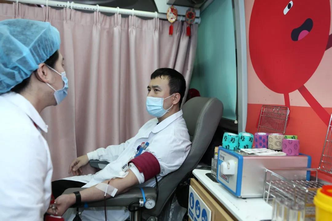4月1日,闵行区中心医院30余名“白衣天使”按照疫情防控要求分时分批登上停靠在大院的“小血人”爱心献血车慷慨捐献热血,为亟需输血救治的病患送去“重生”的希望。
