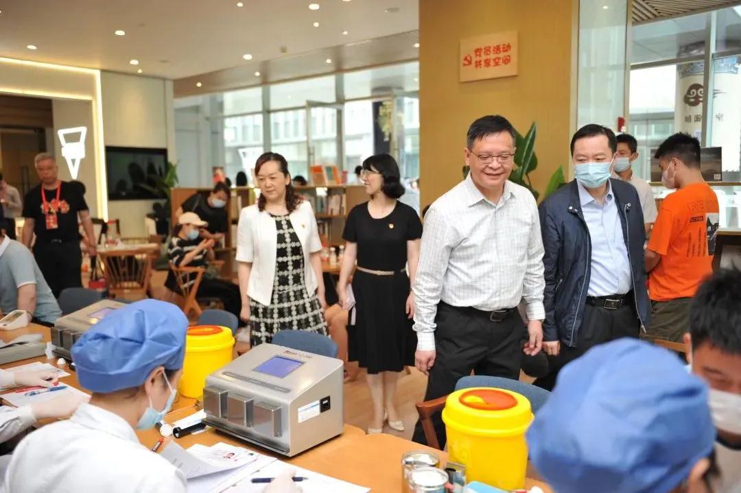 开展无偿献血,确保临床用血质量,保障公民生命健康,是一项永不竣工的工程,是时代的要求,是群众的需求,也是历史赋予的责任。在6月14日世界献血者日即将到来之际,向所有为无偿献血事业作出贡献的人们表示感谢!致敬热血侠们!本次系列活动由杨浦区卫健委主办,杨浦区血液管理事务中心、阳光健康产业有限公司、阳光公益慈善基金会承办,并获得杨浦团区委、阳光控股、长海医院、区卫监所、区中医医院、平凉社区卫生服务中心、中国人民解放军上海血站等单位支持。上海市血液管理办公室主任邹峥嵘,上海市卫健委医政医管处四级调研员胡军,杨浦区卫健委主任高贺通、副主任薛人翼、刘辉,杨浦团区委副书记陈敏兴,阳光控股副总裁褚峰等领导出席活动。