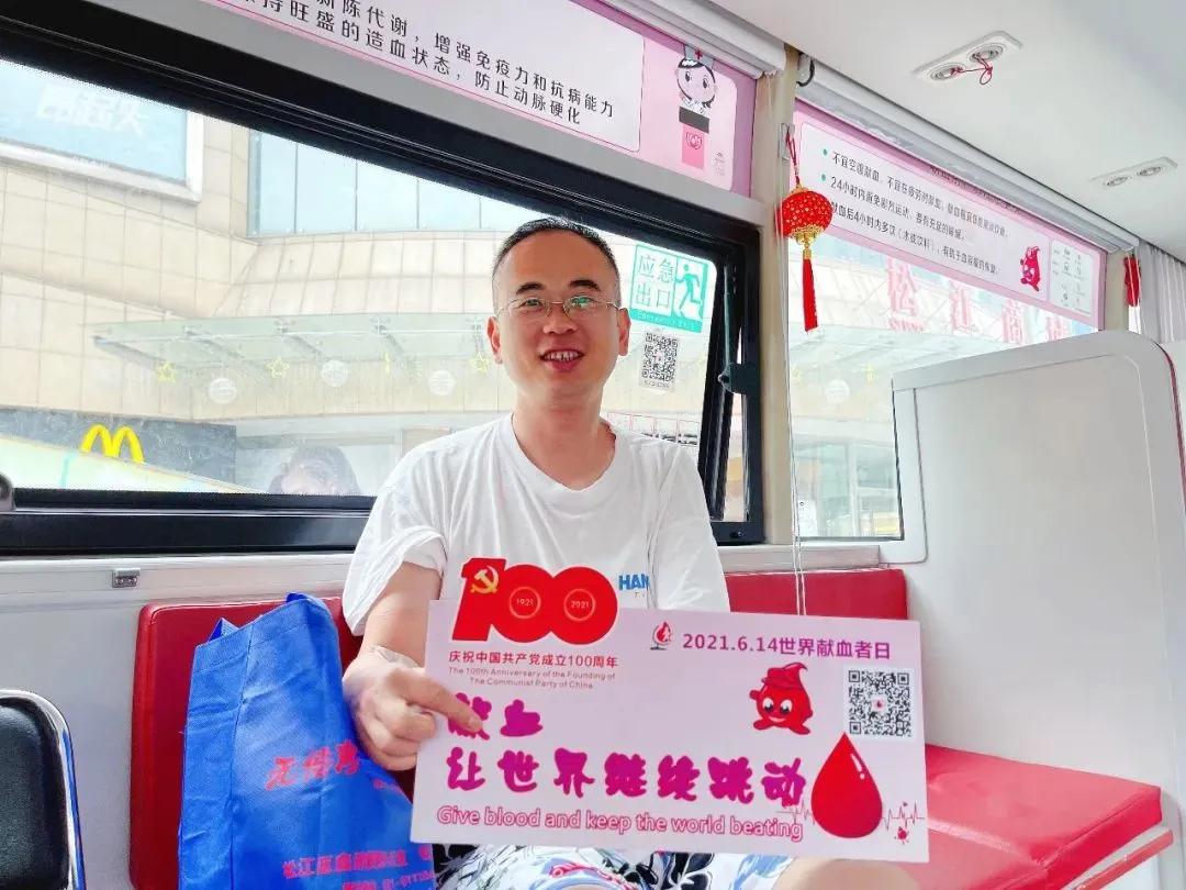 梁文建是松江本地人,在新闻里看到6月14日是世界献血者日,又恰巧是端午节,特地来无偿献血,用行动庆祝“双节”,他说献出的血液可以追溯到用于哪个医院很有自豪感,能够帮助临床上的病患感到很欣慰。