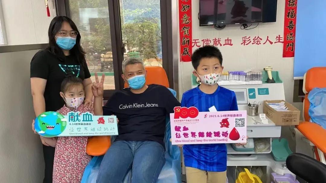来自立信会计学院的李伟是一位人民教师,他带着妻子和孩子来到了大学城爱心献血屋,在无偿献血过程中,为孩子科普血液的知识和无偿献血的重要意义,从小培养他们的爱心,希望他们长大了能将这份爱心传递下去。