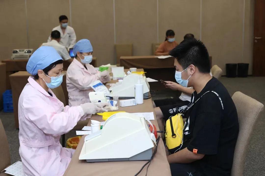 周六的清晨下起了蒙蒙细雨,但这并没有阻挡前来无偿献血的爱心人士的热情。上午8点30分左右,现场就迎来了第一批“热血勇士”,他们是来自德邦物流的员工。体温检测、查验健康码、测量血压、领填表格、血液检测、信息登记、无偿献血,现场整个过程秩序井然,来自不同国家、不同地区、不同肤色的人们脸上都洋溢着幸福的笑容。Giovanna来自意大利,在中国工作,是第一次参与无偿献血活动。当被问起作为一个外国人,为什么会想到在中国无偿献血时,她表示:“我是一位母亲,我想到如果有一天我的孩子因为什么原因需要用血时,我希望也有人可以向TA伸出援手,这就是我参加这个活动的初衷。”另一位来自德达医院餐饮部的员工,在经过现场工作人员的血液常识科普后,当看到同伴准备献400ml血液时,毫不犹豫地将自己的无偿献血量由原先的200ml改成400ml,并顺利献出。临近中午,考虑到有些无偿献血者距离早上进食已有一段时间,工作人员贴心地拿来点心、牛奶给等候的无偿献血者补充能量。