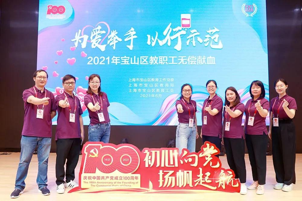 2021年6月29日、30日,宝山区教育局在区教育学院组织下开展了2021年宝山区教职工团体无偿献血活动。1000名教职工参加了活动,在建党百年前夕,以实际行动致敬百年,体现宝山区教师为爱举手,以行示范。