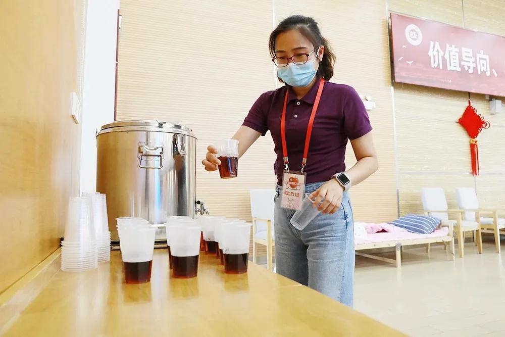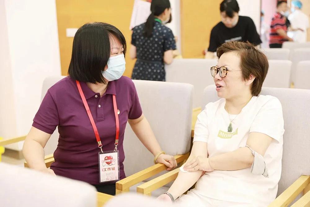 在宝山区血液管理中心的支持协调下,根据防疫要求,宝山区教育系统各单位教职工在党政工领导组织带领下井然有序按要求错峰参加无偿献血。无偿献血教工用热血助力爱心传承,向建党百年致敬。印有“为爱举手”和“宝山教育Logo”的小扇子及时为无偿献血的教职工带来一丝清凉,现场还播放了华山医院感染科主任张文宏在6月14日世界献血者日表率无偿献血的宣传小视频,营造了无偿献血光荣的公益氛围。