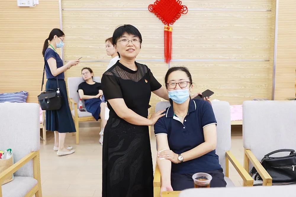 宝山区教育工作党委书记沈杰、宝山区教育工作党委副书记朱英等亲临无偿献血现场,亲切慰问了无偿献血教工,勉励教工继续“比学赶超”当先锋,以实际行动为爱举手,践行宝山教育以行示范,做出教书育人者的应有贡献。
