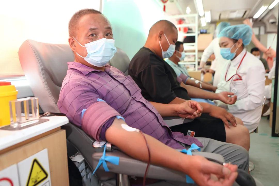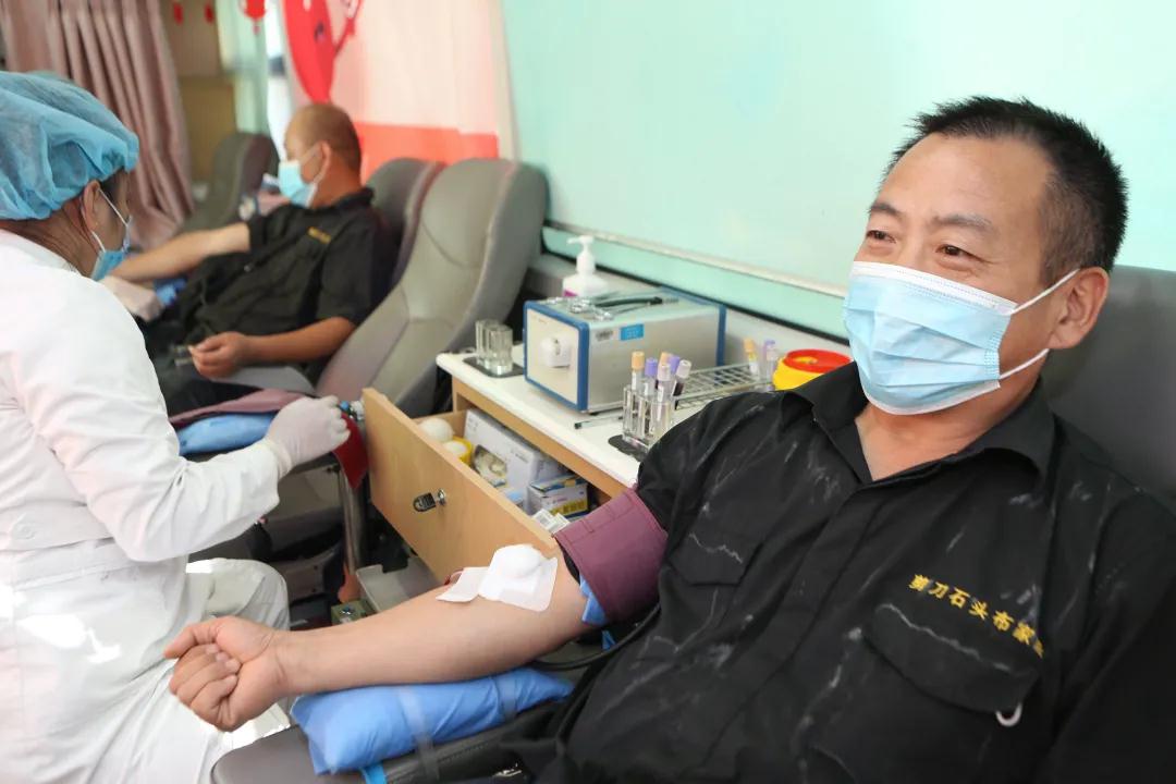 这边活动结束后,爱心献血车又辗转赶到位于虹桥镇吴中路上的上海剪刀石头布家居实业有限公司广场上,保安领班杨军一边引导献血车停靠,一边用对讲机呼叫同事来无偿献血。无偿献血车停稳后杨军第一个登上无偿献血车献出热血。刚从外面施工赶回来的安装工程师伊贵、陈雷雷,来不及换下结满“盐花”的工作服就伸出手臂分别献出各自的热血浓情,程伊贵说他已坚持无偿献血20余次,献血间隔期到了有时间了就会无偿献血,希望帮助到亟需输血救治的患者。