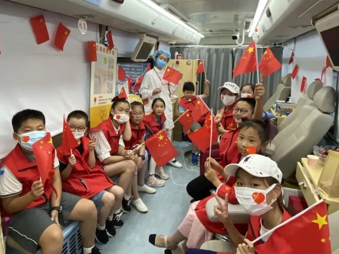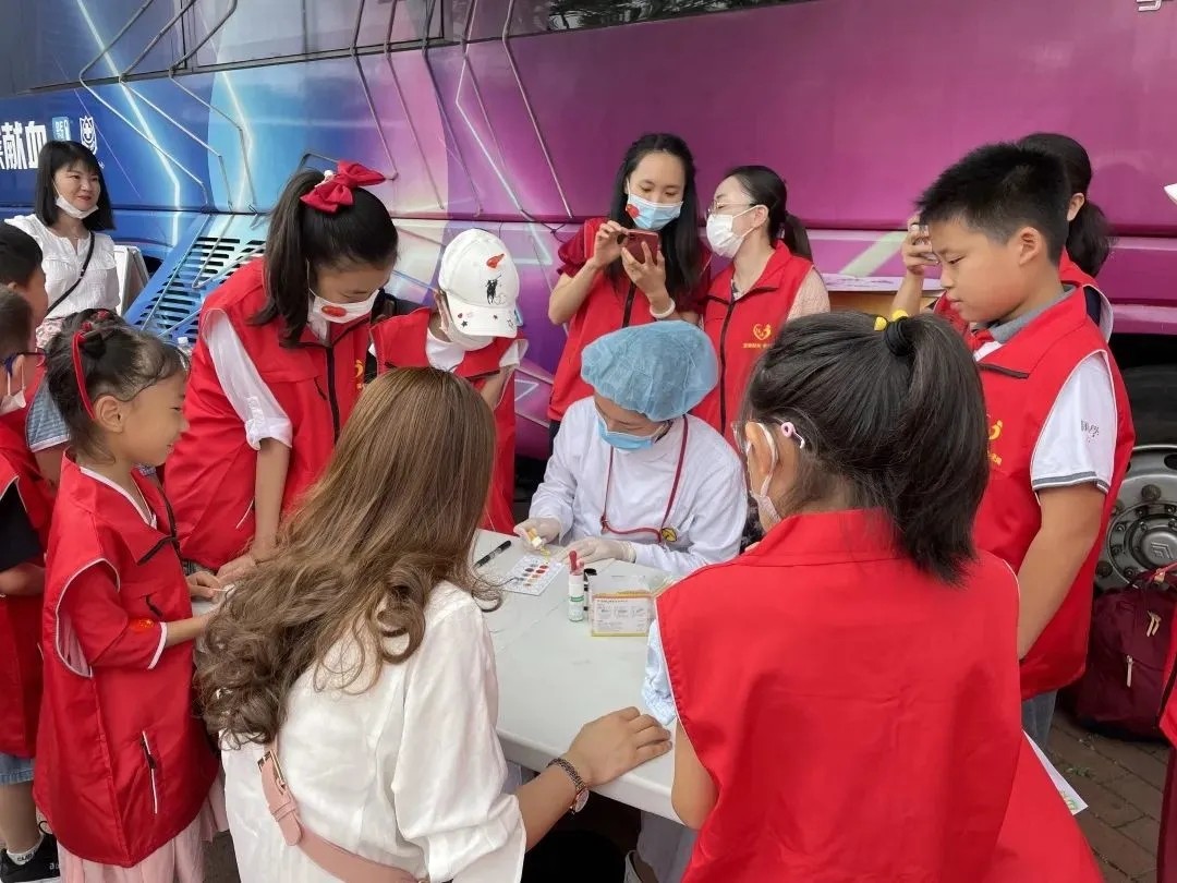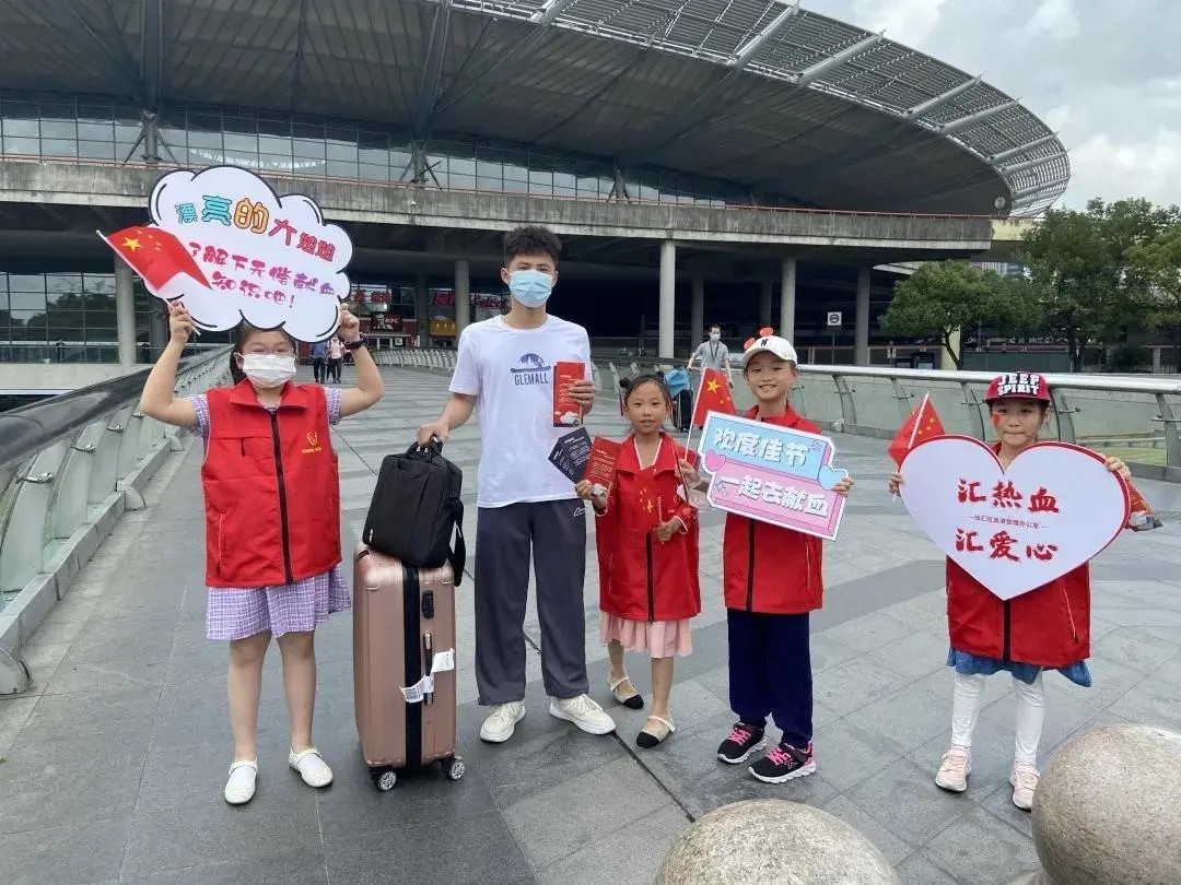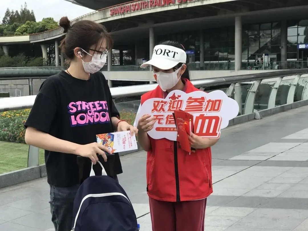 与此同时,10月6日徐汇区血液管理办公室在上海南站献血点,开展了以“爱国主义教育,传承奉献精神—红色传承志愿童行”小小志愿者无偿献血宣传招募体验日主题活动。