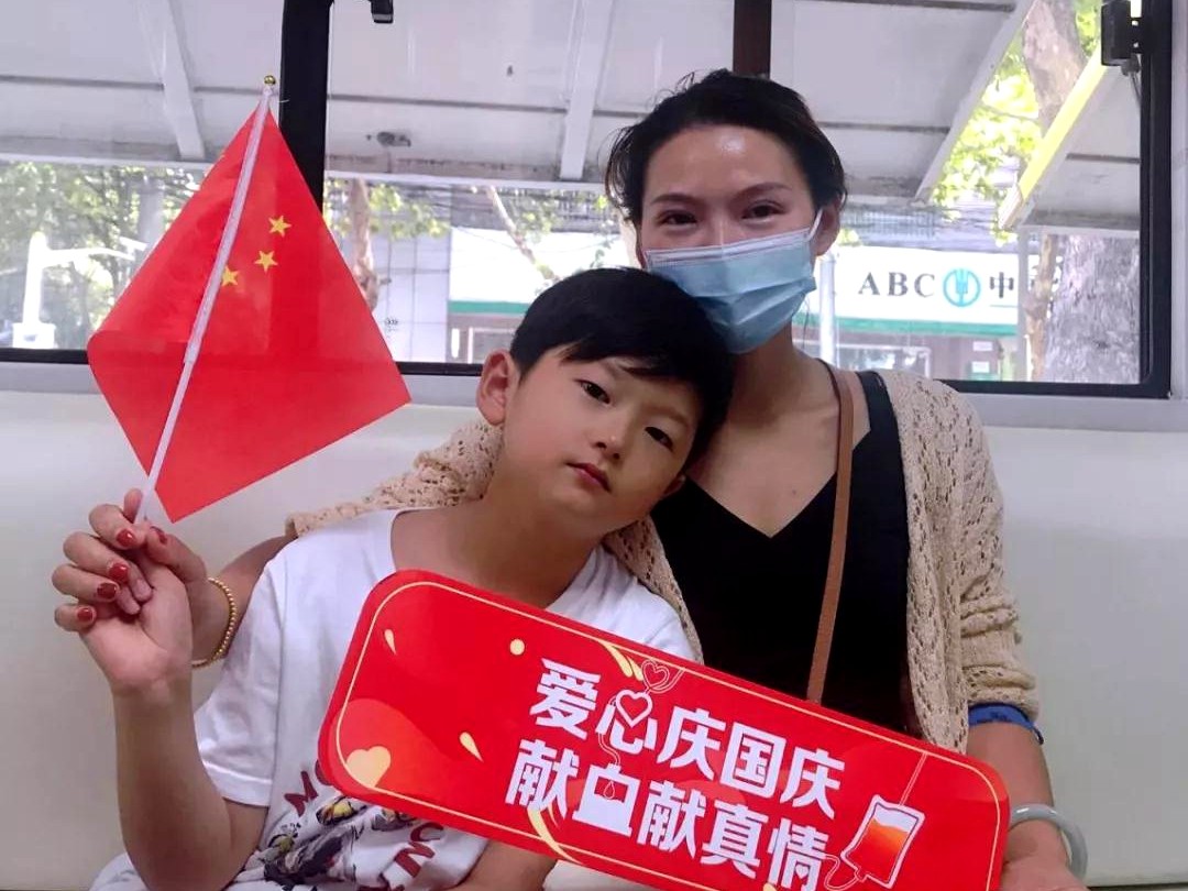 无偿献血者黄琴带着孩子来到大场无偿献血点,撸袖捐献400ml热血。为儿子树立了优秀榜样,为每一个小家的阖家团圆助力,无偿献血献真情!