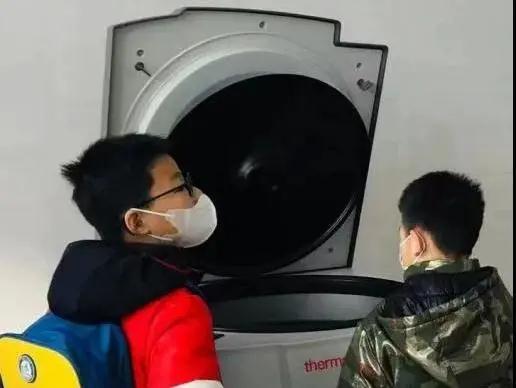 在血库,工作人员告诉同学们,这里是专业存放血液的地方,血液在这里保存要求很高,要分成冷藏区和冷冻区,要保存在专用冰箱冰柜内,24小时监控,还有专用的血小板震荡器不停震荡以保持活性,青浦区各个医院的病人用血都来自这里。