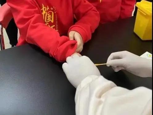 参观完成分室后,在采血室,同学们现场观看了成分献血的全过程,随后工作人员为同学们免费检测血型,教他们血型的判定方法。