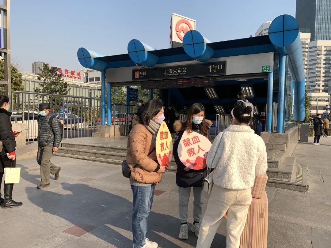 为迎接2022新年的到来,同时为加强无偿献血的宣传,静安区血液事务管理中心组织静安区南片的街道无偿献血志愿者们和静安血液服务志愿团队的无偿献血志愿者们在2021年即将结束的最后一周,在人流量密集的上海火车站南广场开展无偿献血街头宣传招募活动。