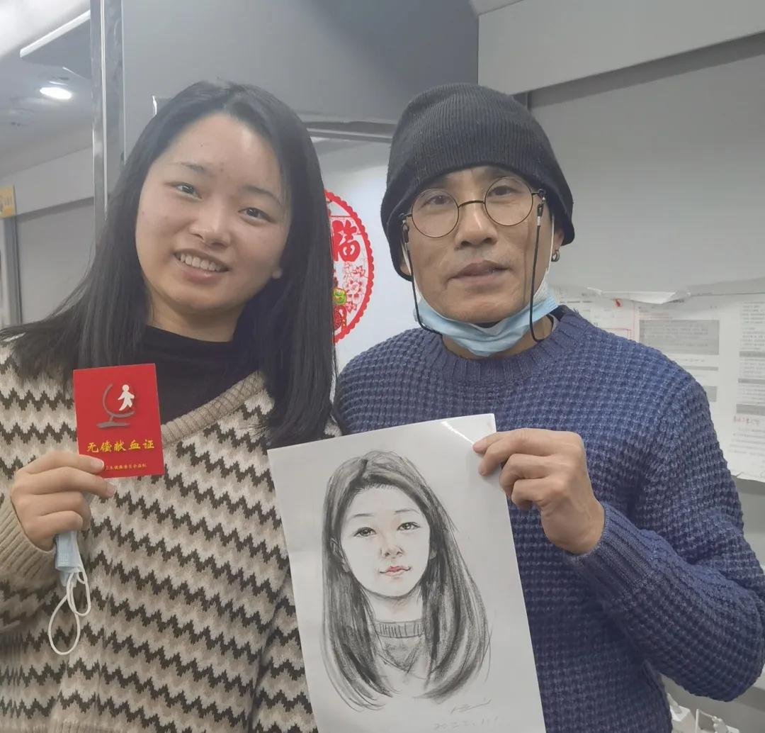 当日下午,长宁区区委副书记纪晓鹏,长宁区卫健党工委书记江平来到虹桥艺术中心献血点位慰问工作人员以及我们的志愿者,非常巧合的是当时正在献血的是一位医学院的女研究生,她已不是第一次献血了,她甜甜的说:“将来我也是一名医务人员,用捐献热血的方式开启新年我觉得特别有意义。”肖像画艺人为这位美丽的大学生献上肖像画,她又惊又喜,表示比照片更生动立体,特别好看,没想到元旦献血有这么好的活动。