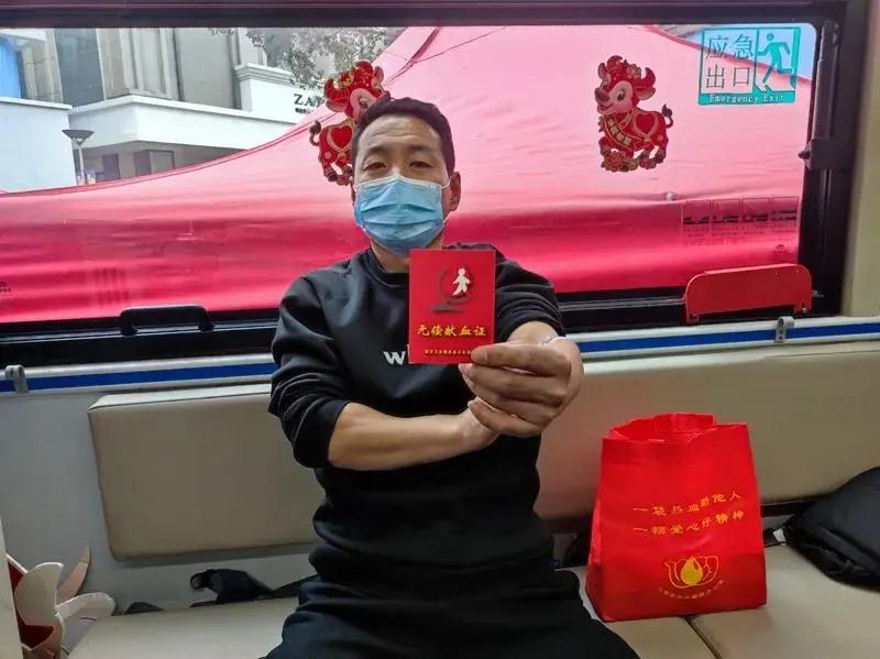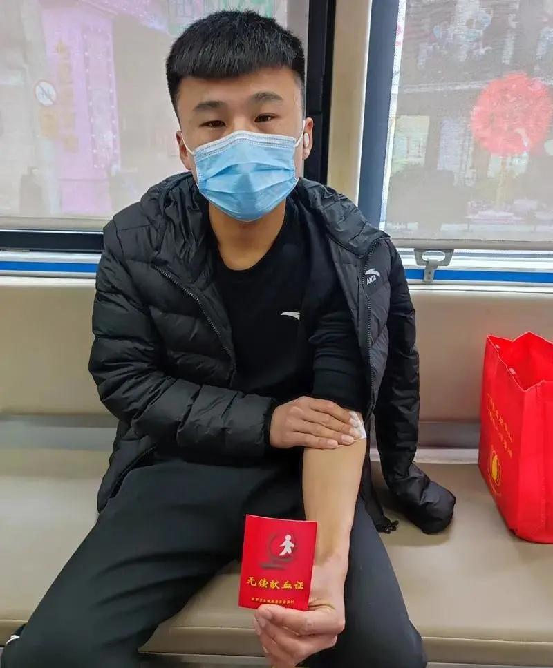 第一位无偿献血志愿者是在上海工作的张先生,从交谈中得知这是他的第四次无偿献血,元旦假期特地赶来无偿献血,他说:“无偿献血,是我献给新年的礼物,希望2022年有更多的人参与无偿献血,挽救更多的生命。”