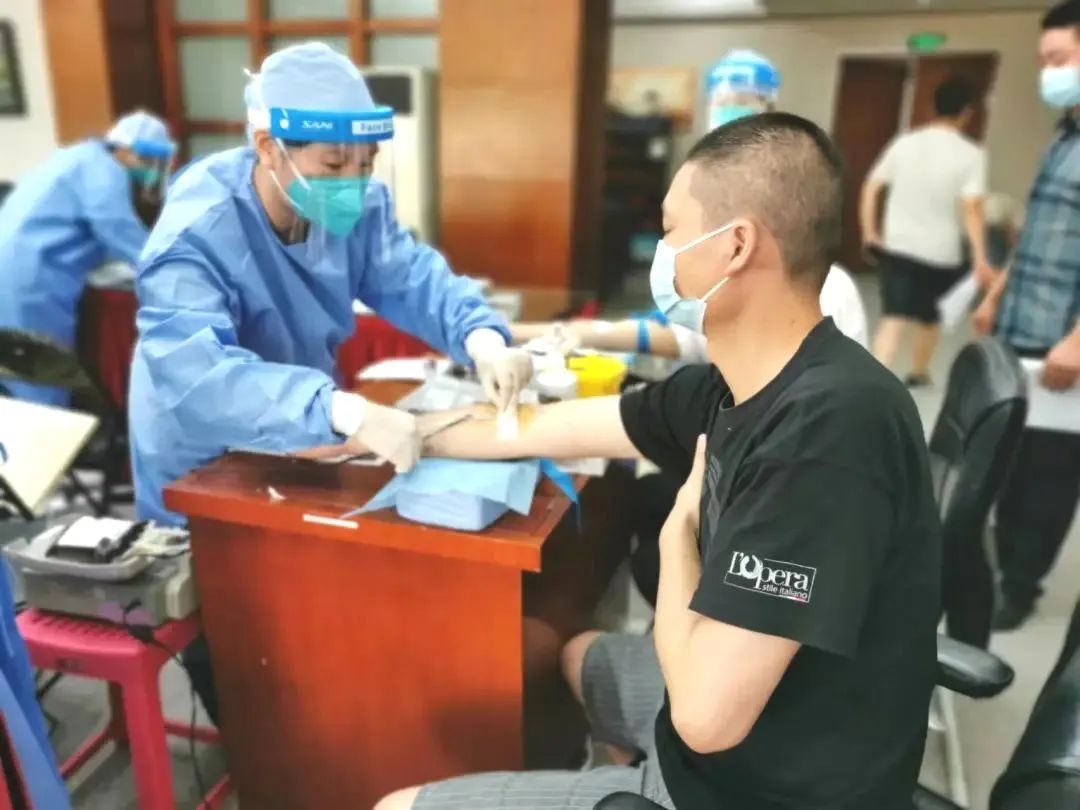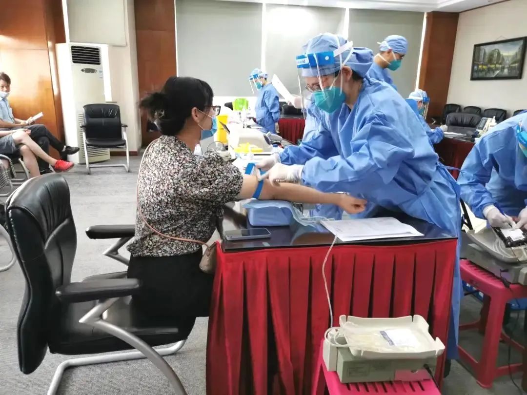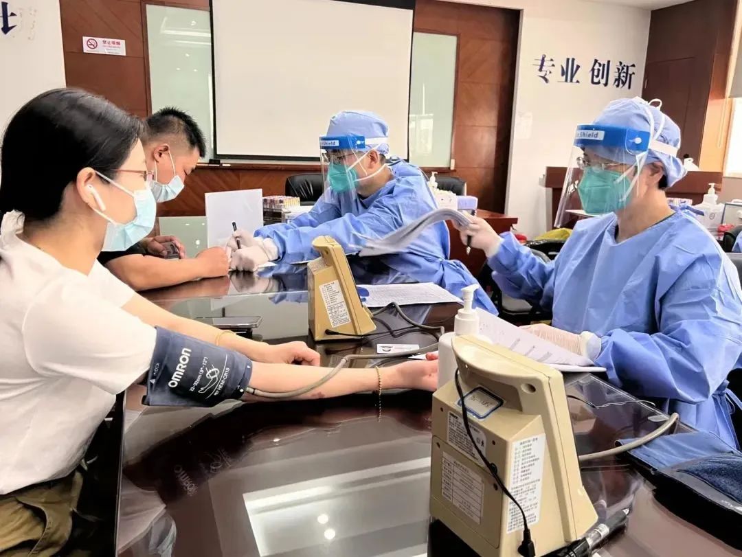 8月6日一大早,青浦区血站党支部8位党员来到重固镇大宝化工有限公司开展“我为群众办实事”主题党日主题活动暨无偿献血服务进企业活动。活动现场,在严格落实疫情防控的条件下,工作人员有序分批开展疫情排查、体检、信息登记、化验初筛、募集血液等环节。活动中共有30位员工成功捐献热血,共计7000ml。