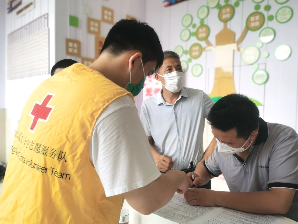 由于今年疫情的特殊性,本次无偿献血现场落实了严格的疫情防控措施。大厅内,在志愿者们的引导下,无偿献血者们有序地进行着登记、量血压、抽验血等检查环节。除了为大家做好后勤保障工作,志愿者们还向无偿献血者宣传有关献血常识,叮嘱他们在献血之后的有关注意事项。