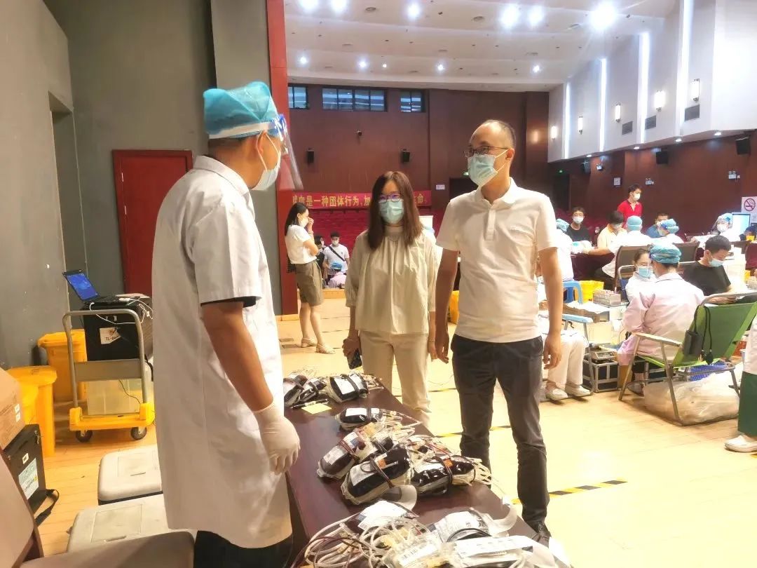 副镇长马逸欣(右一、右三)来到现场看望和慰问了无偿献血志愿者和工作人员,嘱咐工作人员要做好无偿献血工作,并向无偿献血者表达了崇高的敬意。