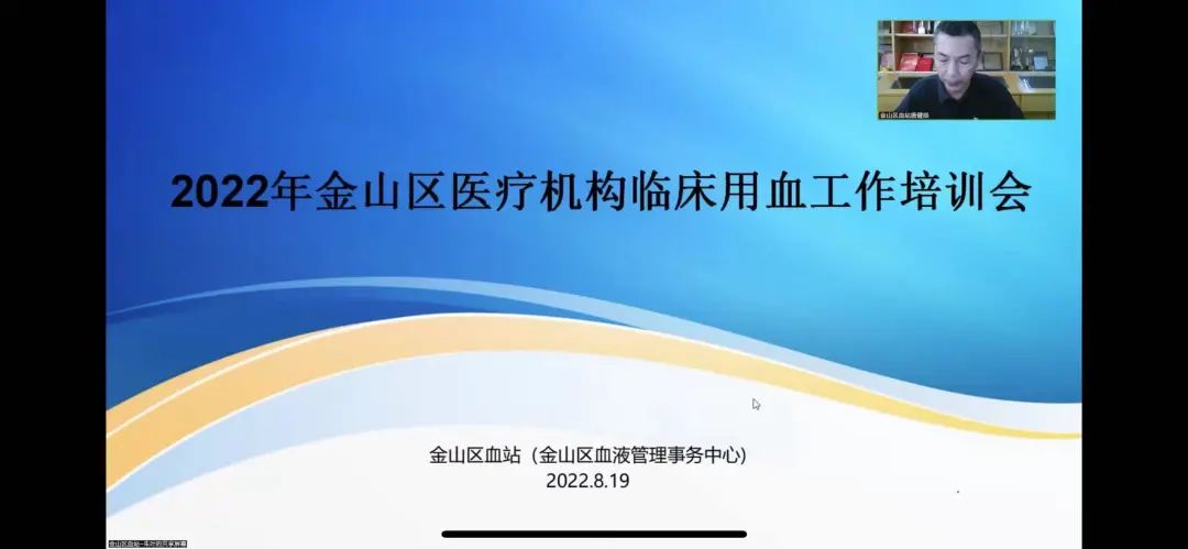 8月19日下午,为进一步加强金山区临床用血管理,贯彻落实《医疗机构临床用血管理办法》,金山区血站(金山区血液管理事务中心)召开金山区医疗机构临床用血工作培训会。金山区血站站长唐健辰主持本次培训会议。