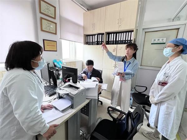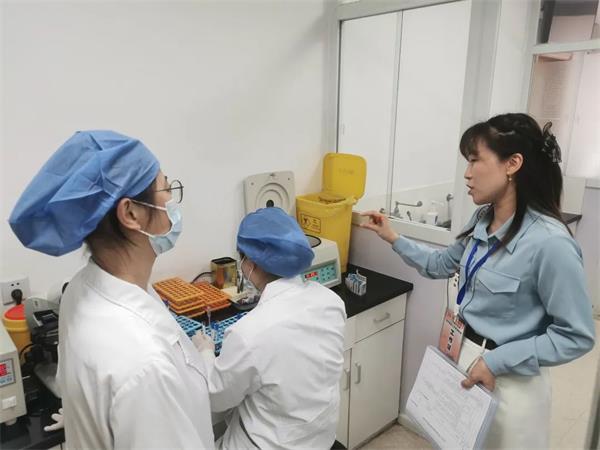 图:上海市临床输血质量控制中心主任钱宝华、杨浦区卫生健康促进中心(杨浦区血液管理事务中心)主任孙云、上海市临床输血质量控制中心秘书、长海医院输血科副主任臧艳等专家组成员对各相关医疗机构进行临床用血专项检查