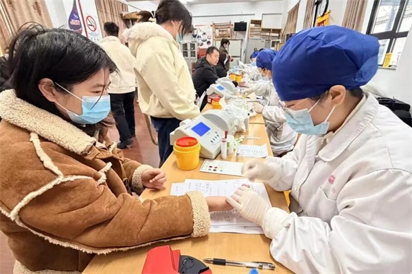 虽然寒风袭袭,但献血现场暖意融融。在志愿者的指引下,参与献血的市民依次完成信息登记、身份验证,随后有序进入健康征询、血压测量、化验等初筛环节,待检查合格后,分批错峰等候献血。