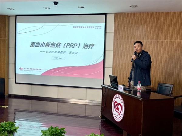 本次培训特邀华山医院输血科王志成教授主讲富血小板血浆(PRP)治疗专题。王教授结合其最新科研成果,从PRP的制备原理、生物活性成分构成切入,系统阐释了血小板生长因子释放机制与纤维蛋白基质的修复作用,同时分享了PRP在皮肤美容、运动医学、骨科等领域的临床应用案例,解析了从基础研究到临床转化的关键技术要点,为参训人员搭建了理论与实践的桥梁。