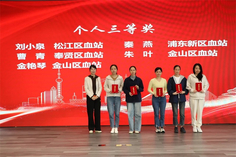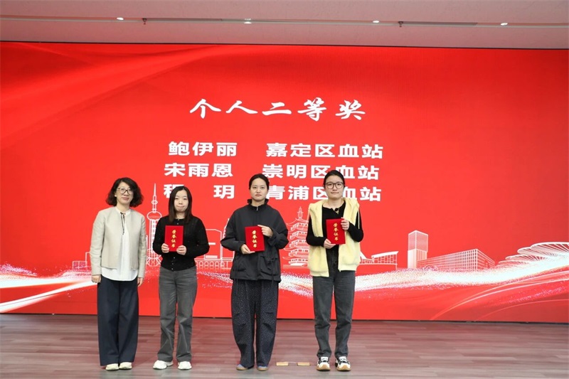 在本次技能竞赛的尾声,会场举行了隆重的颁奖仪式,嘉定区卫生健康工作党委副书记、医务工会主席徐锋和上海市血液中心制备供应部部长孙蕴华共同出席颁奖仪式,嘉定区血站站长陆萍主持。